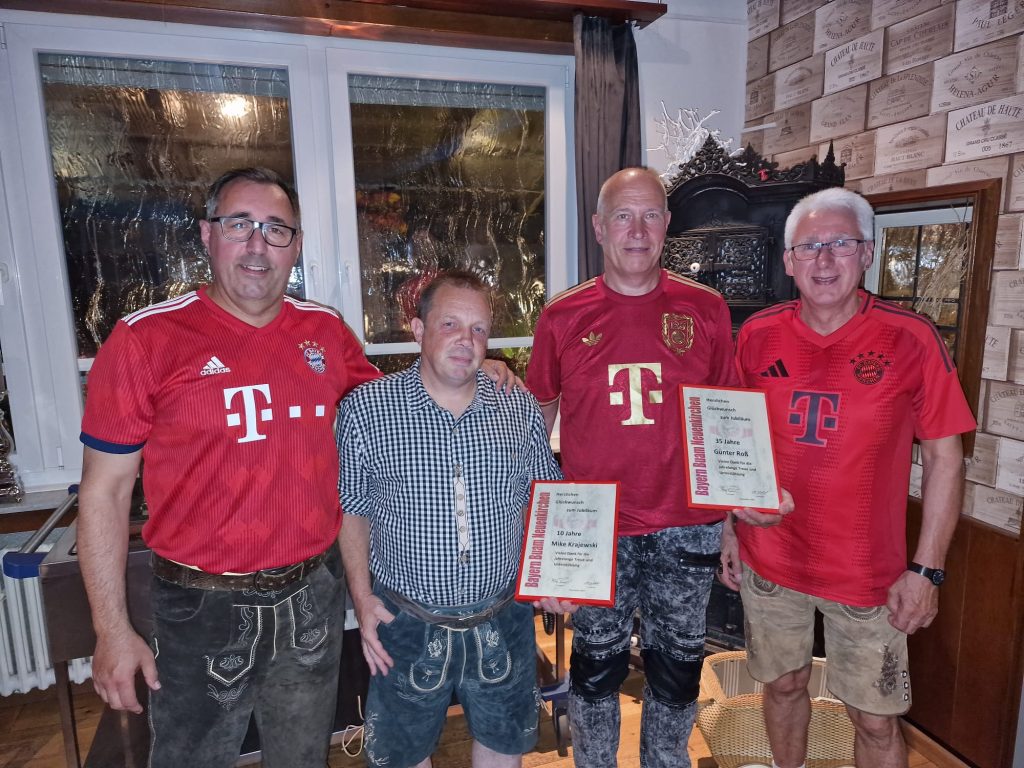 Nach der Begrüßung durch den 1. Vorsitzenden Holger Rövemeier wurde zur aktuellen Kartensituation berichtet sowie ein Rückblick auf die kürzliche Fancubfete sowie das Sommerbosseln gegeben, die bei guter Stimmung bestens organisiert waren. Neben vielen weiteren organisatorischen Punkten, die besprochen wurden, konnten sich die Bayern Buam über die Verstärkung von Sara Schäfers freuen, die an diesem Abend als neues Mitglied in den Fanclub aufgenommen wurde.