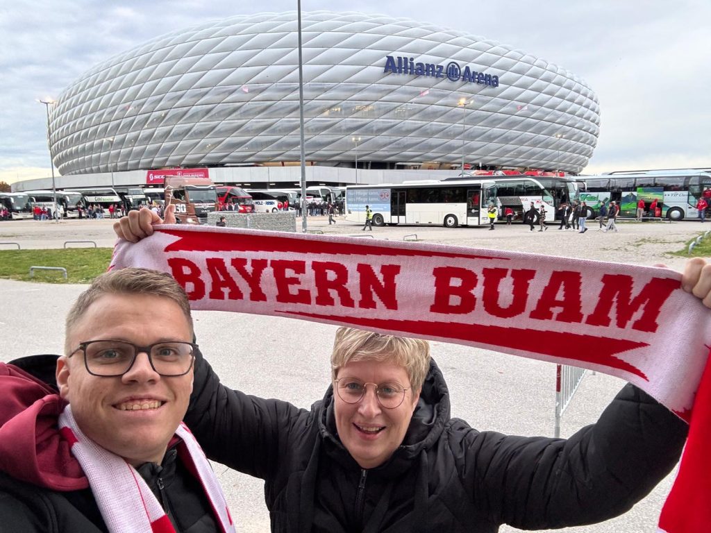 Oder war es doch der Sohn mit der Mama? Egal, Bettina und Lukas besuchten das Spiel gegen Leverkusen. Auftrag vom 1. Vorsitzenden war, drei Punkte mit nach Hause zu bringen. Und natürlich viel Spass zu haben und alles nur genießen. München ist immer eine Reise wert.